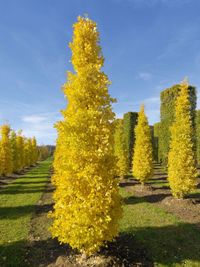 La variedad Menhir tiene color más luminoso que la especie y la particularidad de crecer verticalmente como una columna por lo que es ideal para pequeños espacios. Y podríamos crear con este Ginkgo una avenida de menhires en el camino de entrada a nuestra casa. Admiraríamos su belleza todos y cada unos de los días.