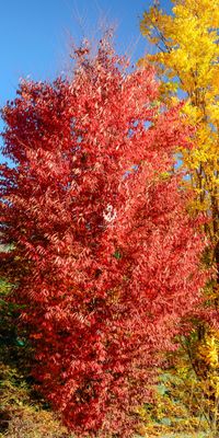 Además de por su tamaño se diferencia de la especie en una coloración otoñal mucho más intensa, casi tanto como la de un arce japonés rojo. Ahora ya podemos plantar un roble de los pantanos en nuestro jardín y apreciar su nobleza y magnífica otoñada.